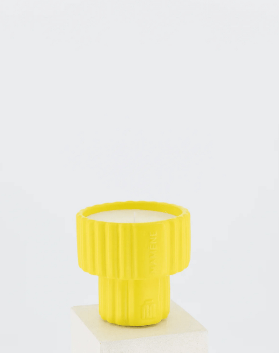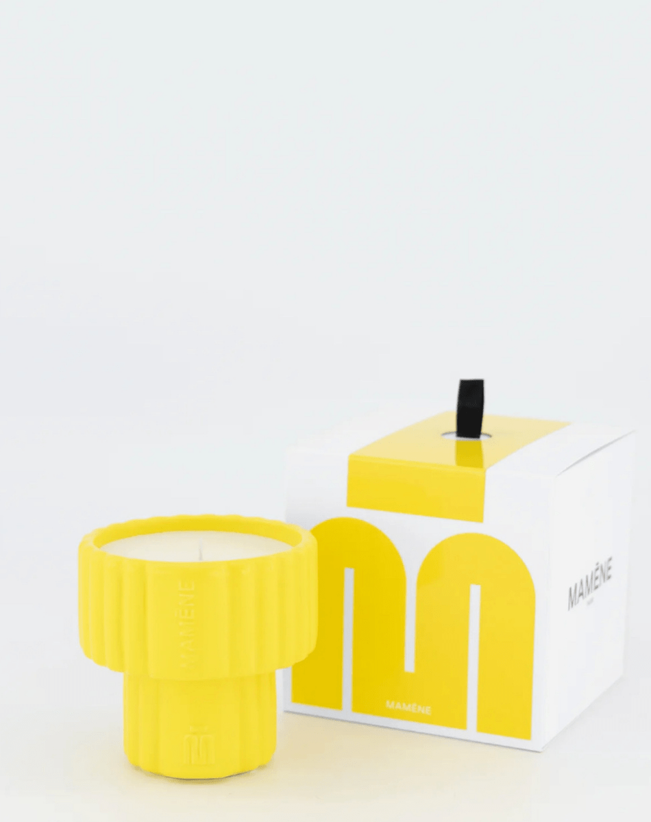 LA BOUGIE PARFUMÉE RECHARGEABLE PODIUM REND HOMMAGE AUX LAMPES CHAMPIGNON DES FLAMBOYANTES ANNÉES 70.