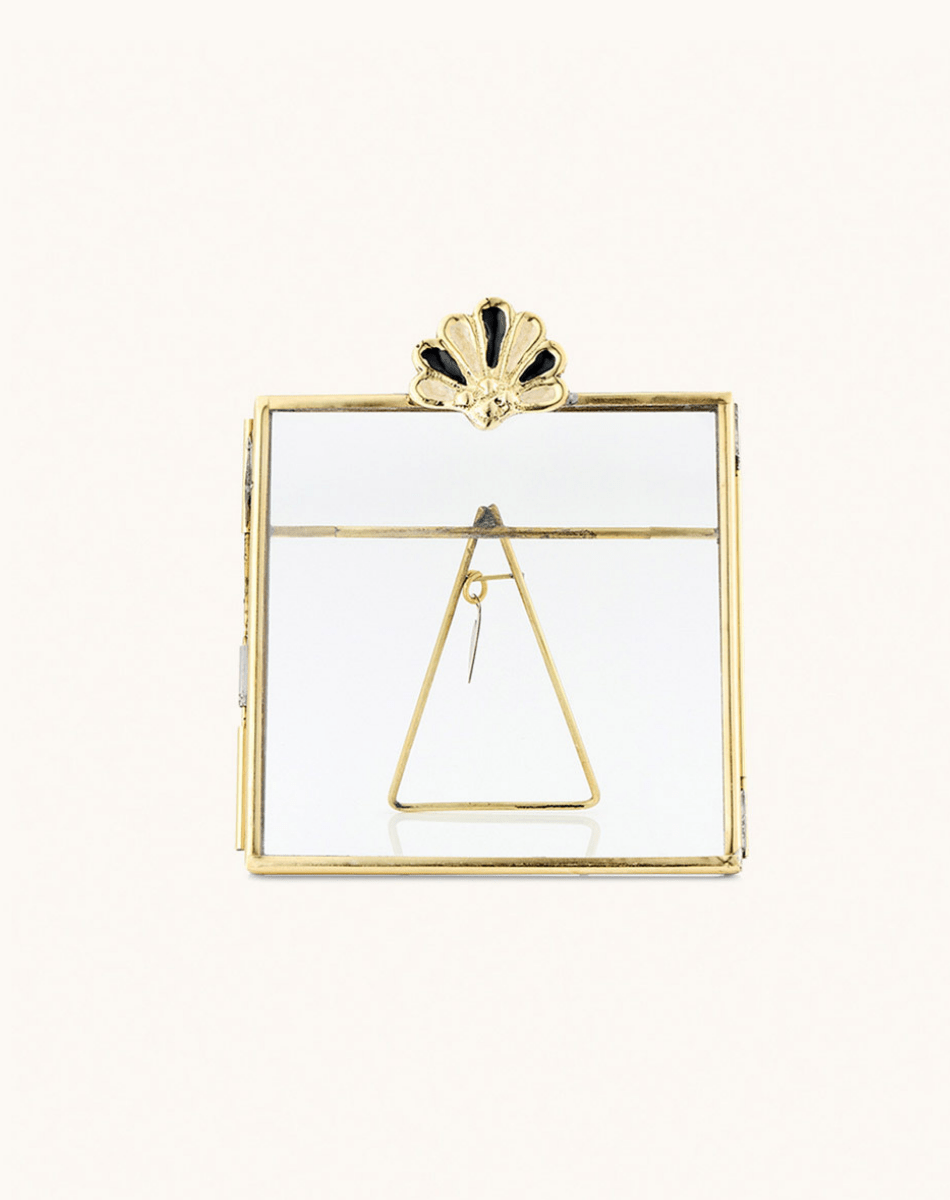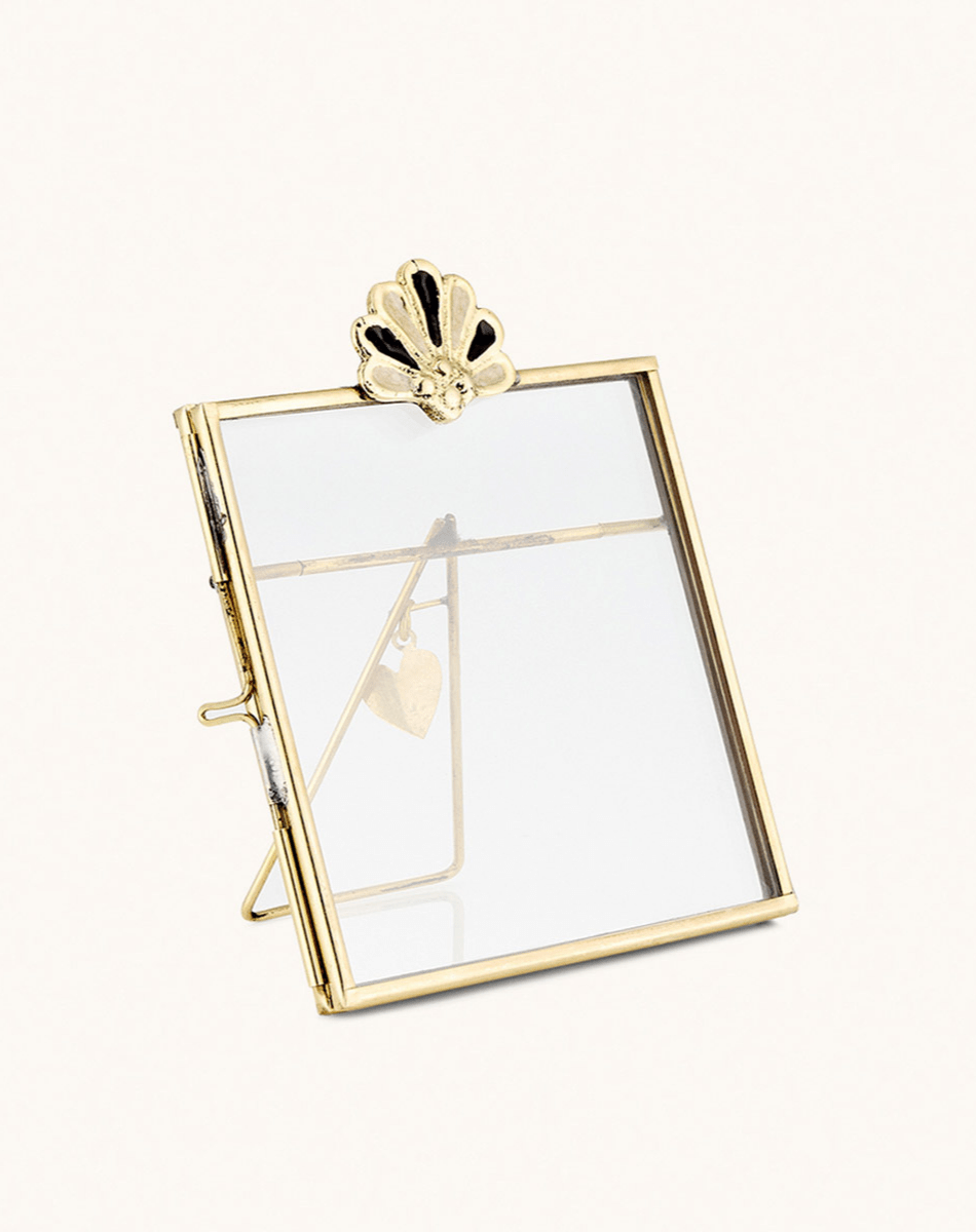 Le cadre Rosie Roset combine un design classique avec des matériaux nobles. Le verre transparent met votre image en valeur avec clarté, tandis que le contour en laiton doré lui apporte chaleur et élégance. Le détail en forme de coquillage ajoute une note décorative tout en restant discret.