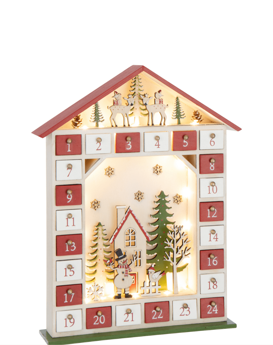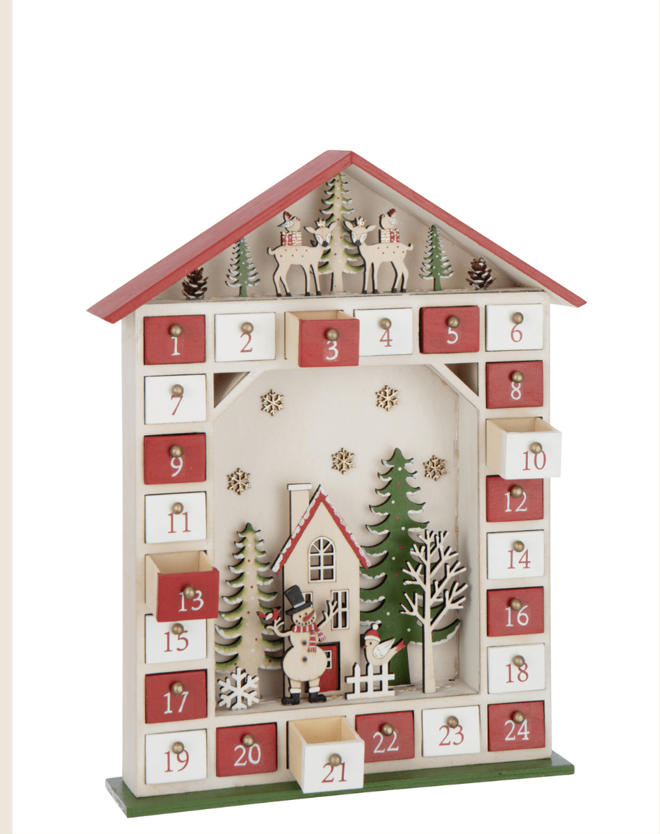 Équipée d’un éclairage LED doux, cette maison scintille au fil des jours de décembre, pour accompagner petits et grands jusqu’à Noël. Les 24 petits tiroirs permettent d’y glisser friandises, mots doux ou mini-surprises, pour un compte à rebours enchanté et personnalisé.