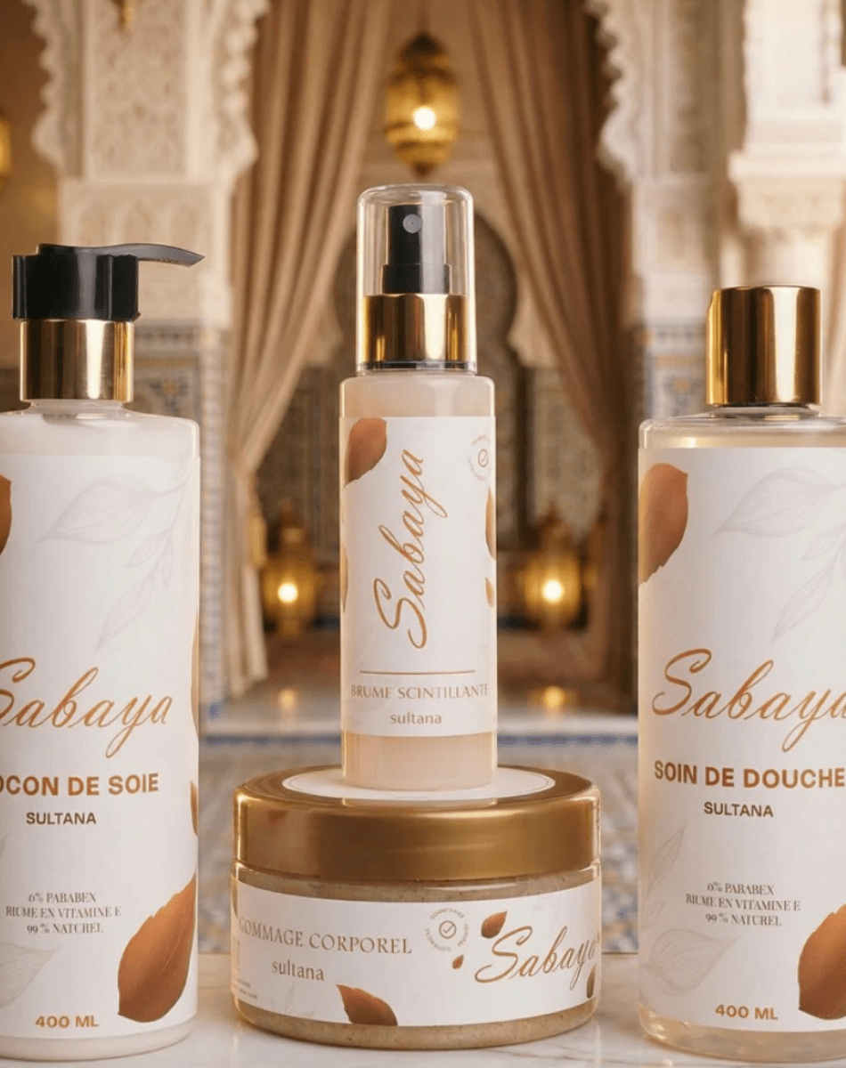 Le coffret Sultana est une invitation à un véritable rituel de beauté inspiré des traditions orientales. Il réunit quatre soins essentiels pour sublimer la peau au quotidien : un gommage exfoliant, un gel douche délicat, une lotion hydratante et une brume parfumée.