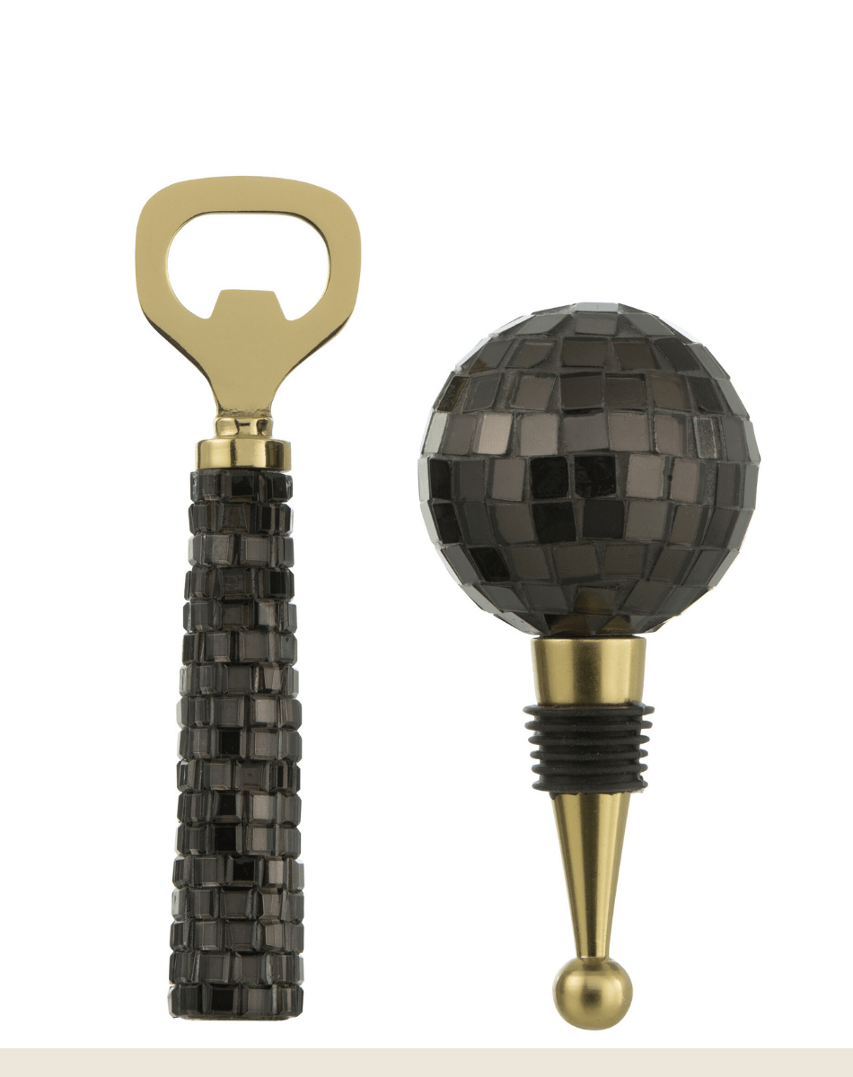 Coffret Ouvre-Bouteille & Bouchon – Mosaïque en Verre Noir