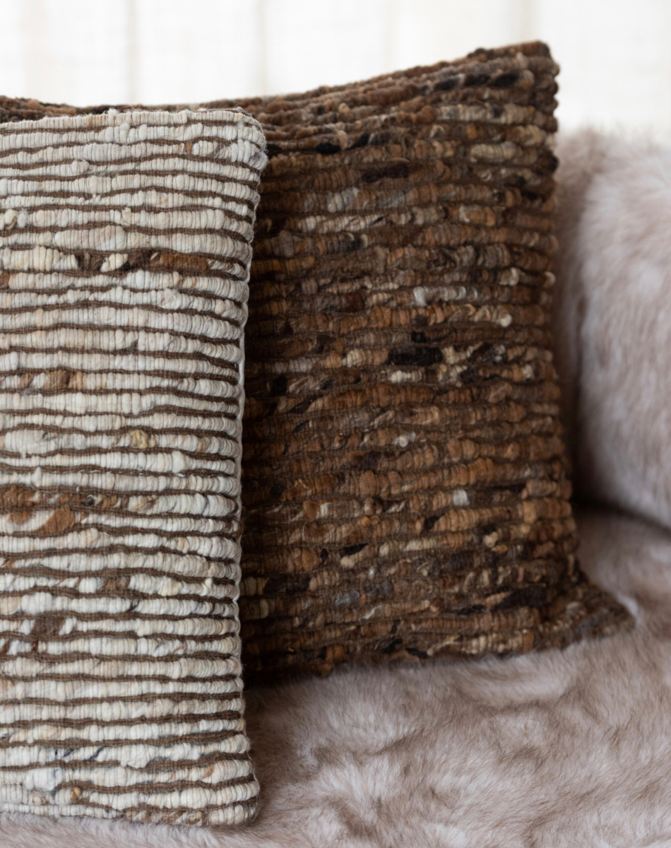 Chaud, texturé et naturellement élégant, ce coussin tissé en laine marron est l’allié parfait pour créer une ambiance cocooning et raffinée. Sa matière naturelle et son tissage apportent du relief et de la profondeur à un canapé, un fauteuil ou un lit, tout en réchauffant instantanément l’espace.