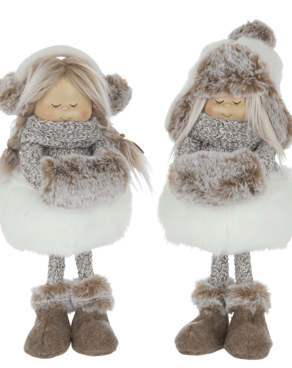 Craquez pour ce duo de figurines adorables représentant deux petites filles debout, coiffées de jolis bonnets en fausse fourrure blanche et marron. Leur design doux, leurs détails soignés et leur finition en polyresine en font des pièces décoratives parfaites pour créer une ambiance chaleureuse et féérique.