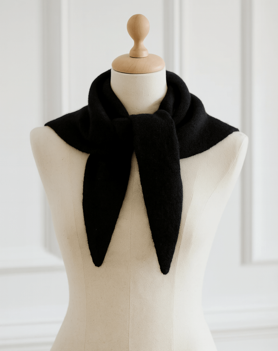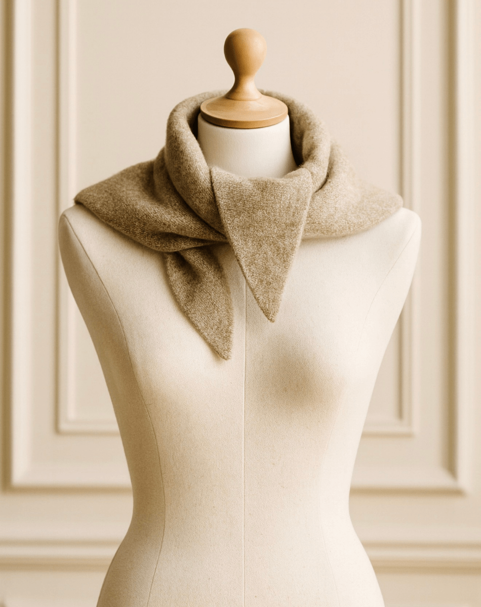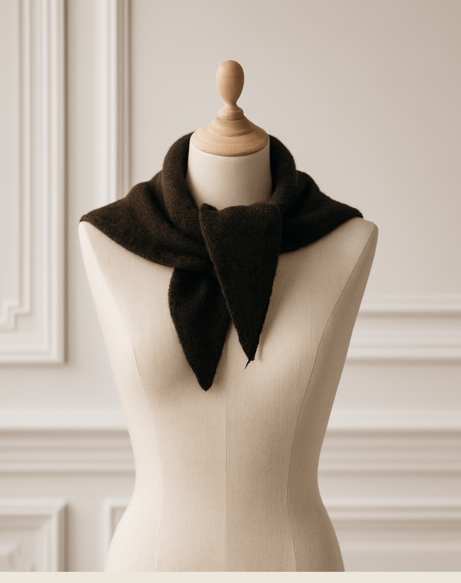 Ce foulard triangulaire en maille offre une élégance discrète avec sa coupe polyvalente. Portez-le noué pour un look chic et maîtrisé, ou laissez-le libre pour une touche décontractée et moderne. Sa texture douce et légère garantit un confort optimal, parfait pour sublimer toutes vos tenues en toute saison.