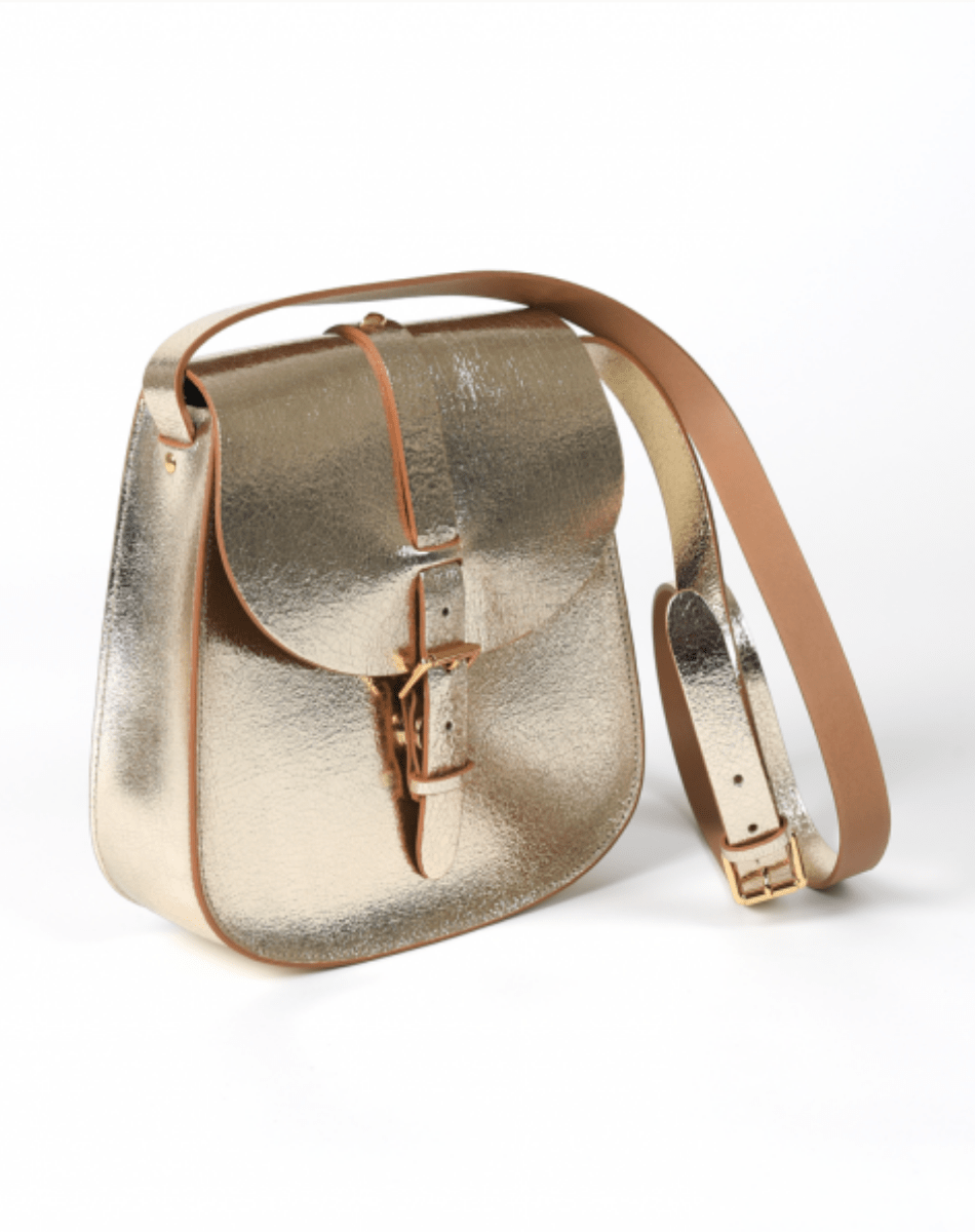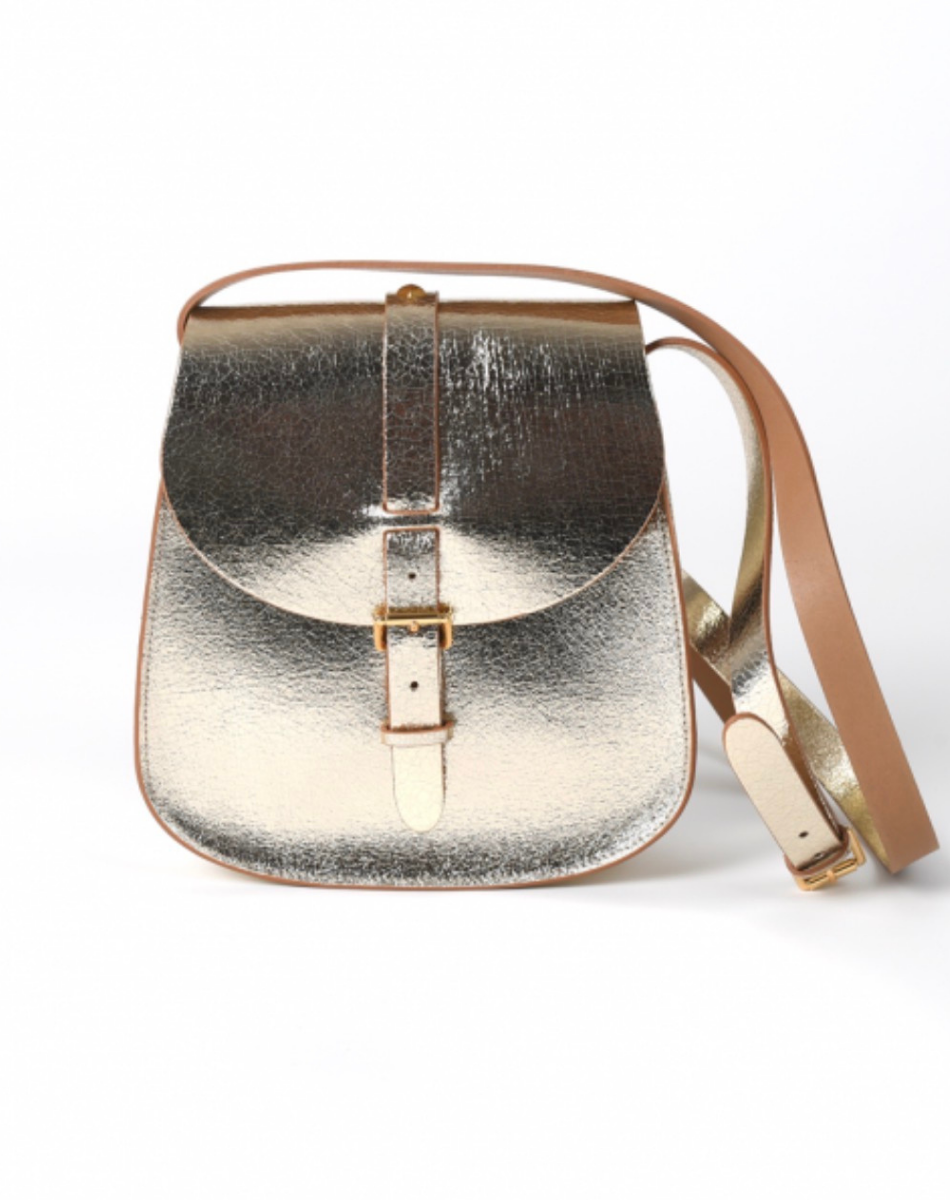 Le Sab, modèle iconique de la marque, s’affranchit du temps et propose, une variété de tailles et d’habillages pour embrasser le quotidien sous toutes ses coutures. Épuré et élégant à l’extérieur, brut à l’intérieur, le voici dans sa taille Medium en cuir craquelé métallisé.