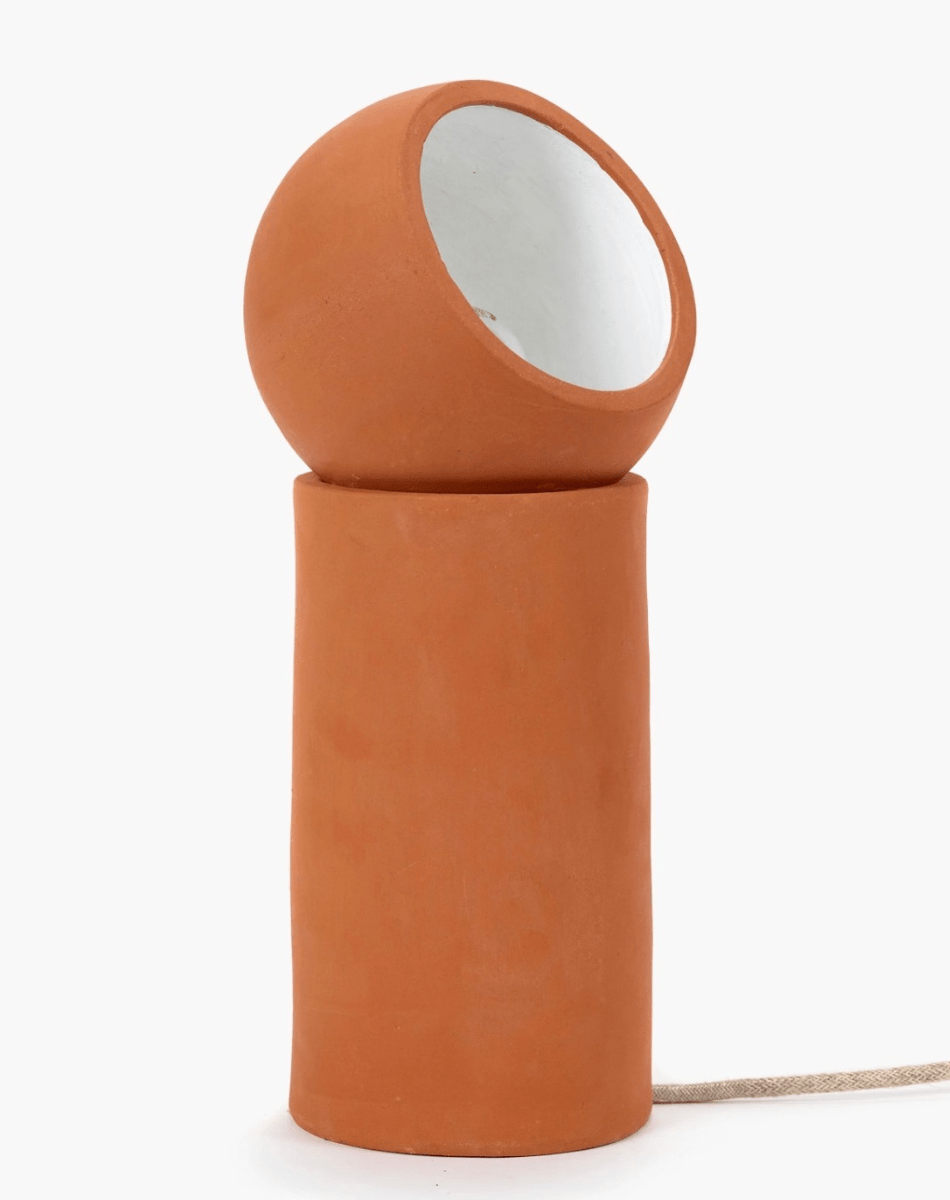 Lauren Van Driessche a conçu cette lampe moderne en jouant avec le terracotta et les formes géométriques tridimensionnelles. L’extérieur de la lampe est de couleur terracotta, tandis que l’intérieur est blanc. L’objet est composé de deux parties distinctes, ce qui permet de choisir l’orientation et de créer un jeu de lumière unique. Cette lampe fait partie de la collection Terra light, elle est disponible en différentes versions.