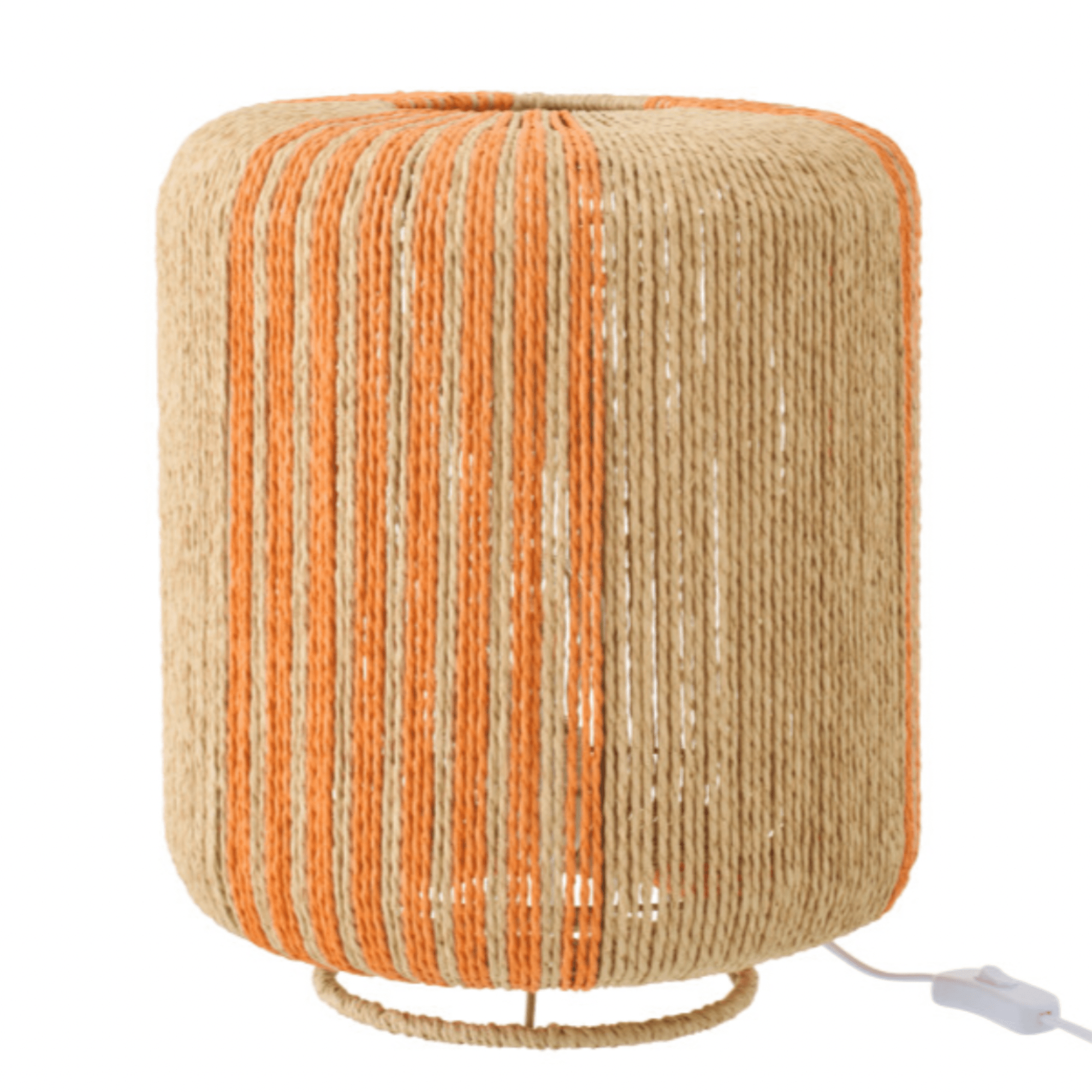Insufflez un esprit bord de mer ou bohème chic à votre intérieur avec cette lampe à poser au design authentique. Confectionnée à partir de corde de jute naturelle tressée, elle se distingue par ses rayures verticales orange mandarine qui dynamisent sa silhouette cylindrique.