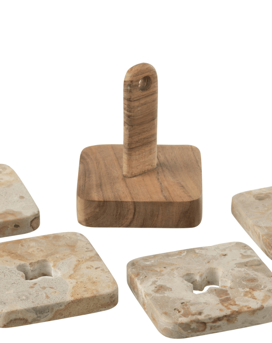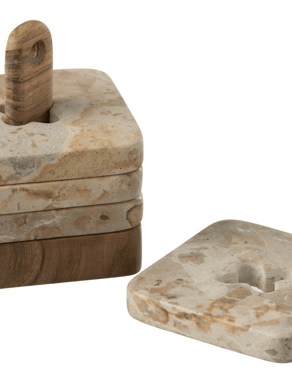 Chaque sous-verre étant taillé dans la pierre naturelle, les nuances et veinages peuvent varier : un charme unique qui fait de cette boîte un indispensable pour les intérieurs chaleureux et authentiques.