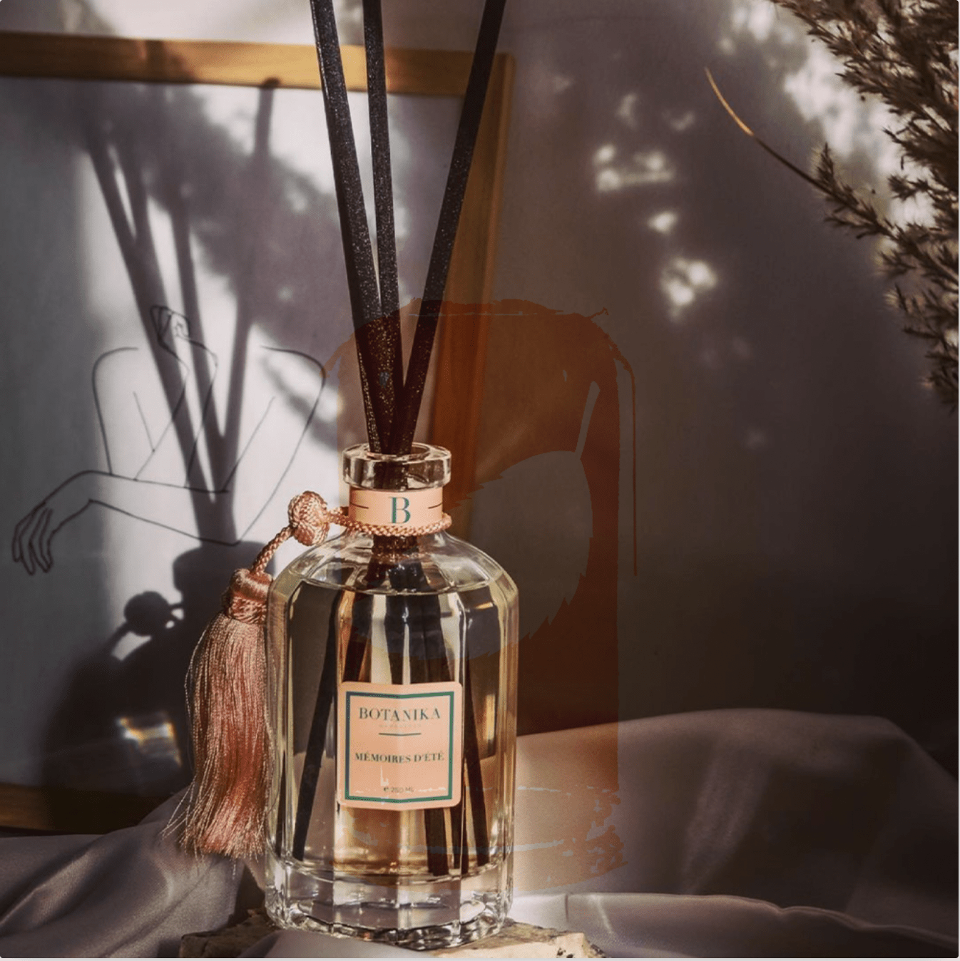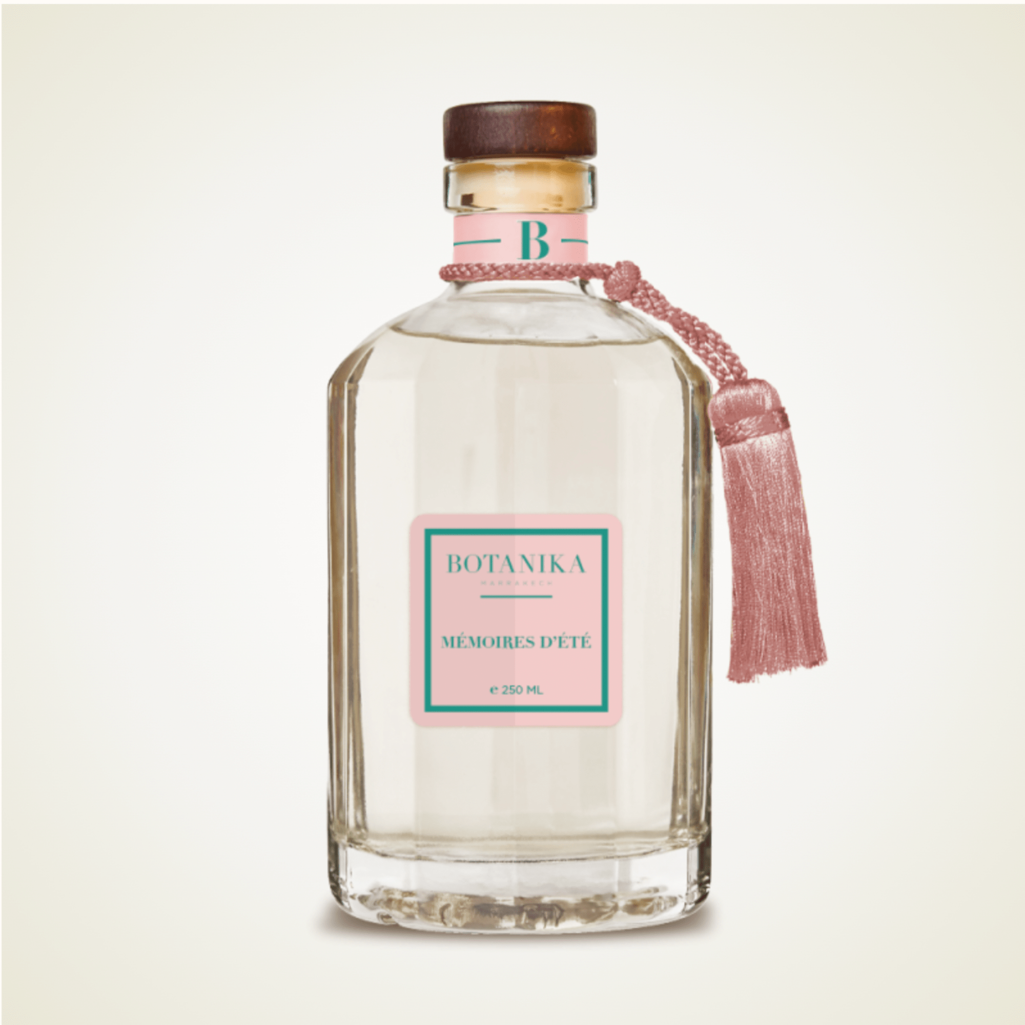 Voyagez au cœur des jardins orientaux avec le diffuseur « Mémoires d’Été ». Présenté dans un flacon en verre cristallin au design apothicaire, ce parfum d’ambiance capture l’essence même d’un après-midi ensoleillé. Son esthétique raffinée, soulignée par un pompon de soie rose poudré et un bouchon en bois noble, en fait un véritable objet de décoration.