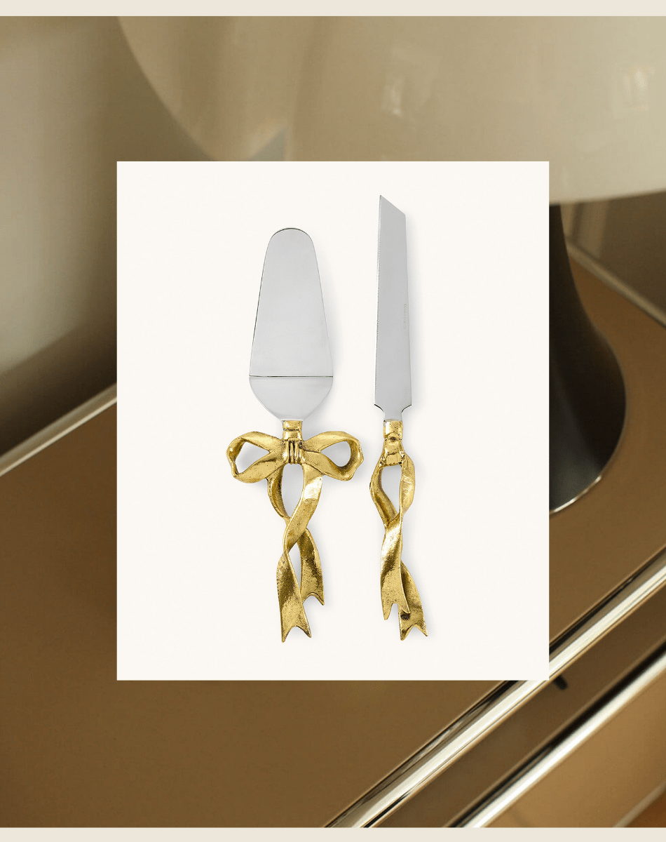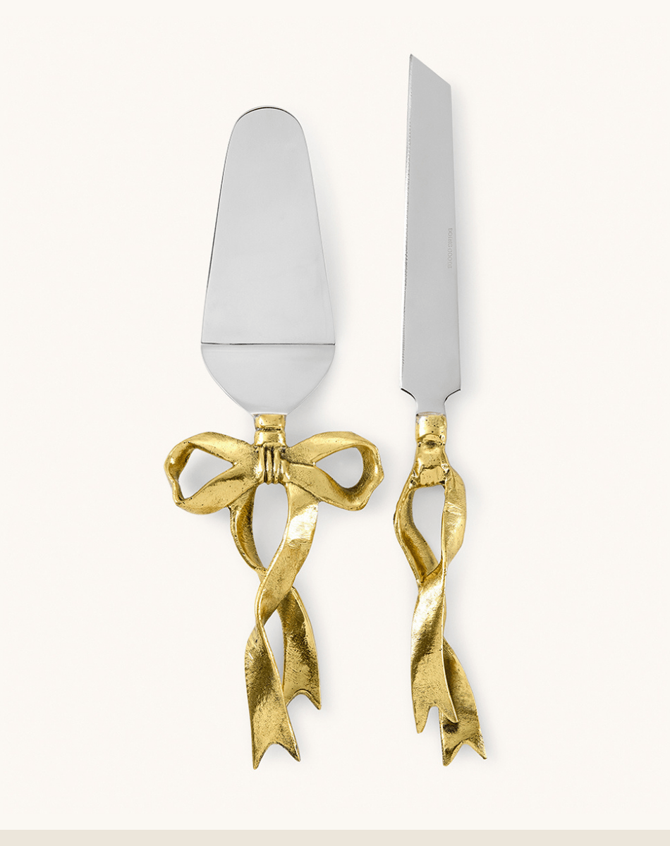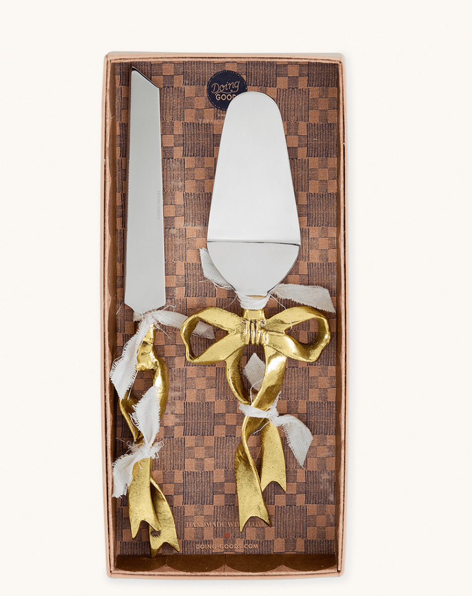 Découvrez le Service à Gâteau Riley Ruban, une belle addition à votre collection de vaisselle. Cet ensemble élégant, qui comprend une pelle à gâteau et un couteau à gâteau, est fait à 100 % à la main par notre équipe talentueuse en Inde à partir de laiton recyclé avec une finition dorée brillante. Conçu avec des détails de ruban intricats, cet ensemble de gâteau apporte un élément unique et stylé à toute occasion.