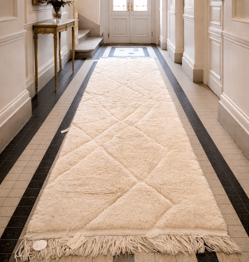 Réalisé par des femmes artisanes au sein de coopératives marocaines, ce tapis est bien plus qu’un objet déco : c’est une œuvre de transmission culturelle, de création collective et de durabilité.