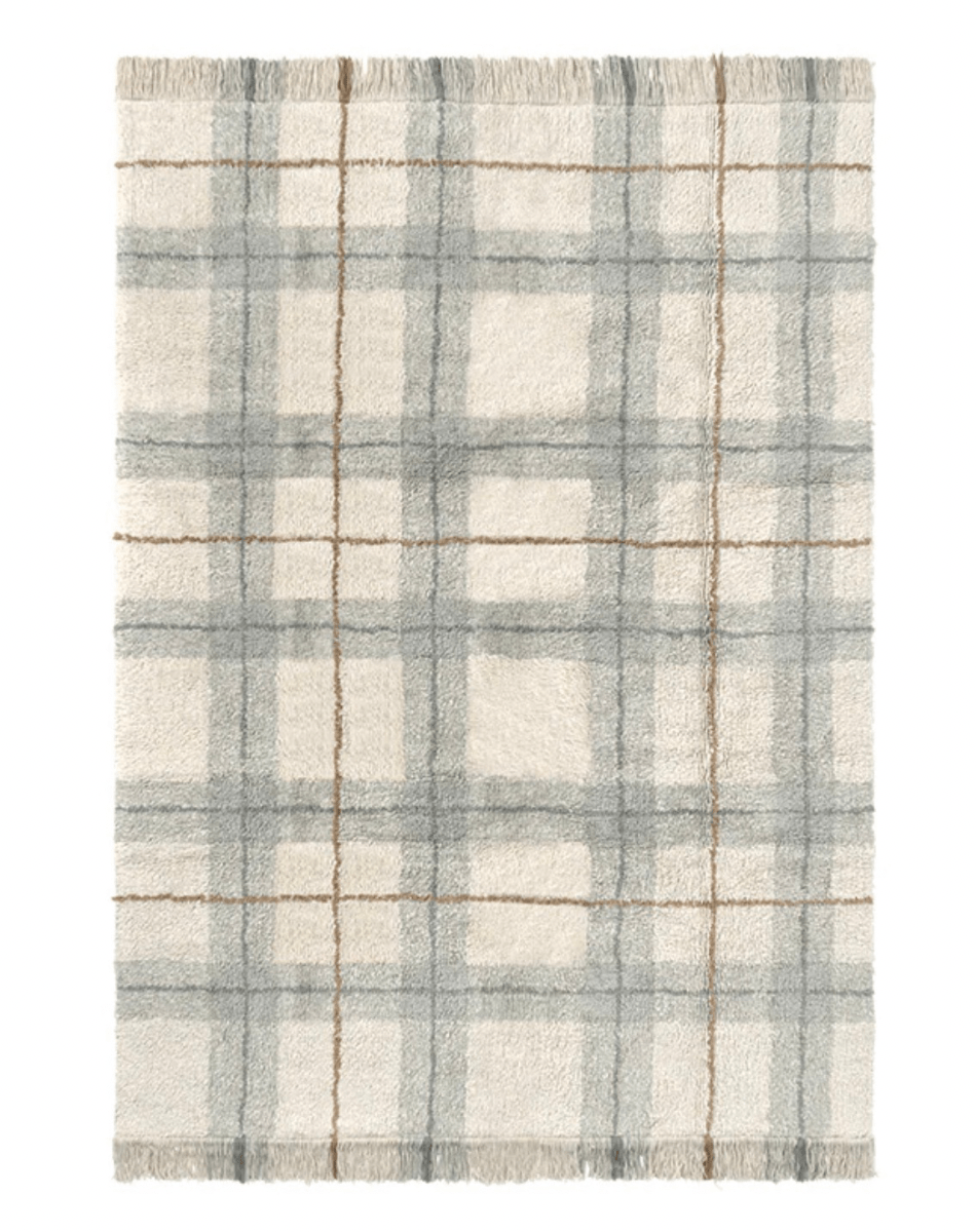 Habillez le sol de votre petit avec une touche tartan britannique ! Ce tapis lavable en coton recrée l’apparence classique du tartan tissé avec une technique de tufting régulière. Avec des tons doux de sauge bleue, bleu vintage et ocre, il est terminé avec des franges soigneusement disposées qui ajoutent une touche cosy.