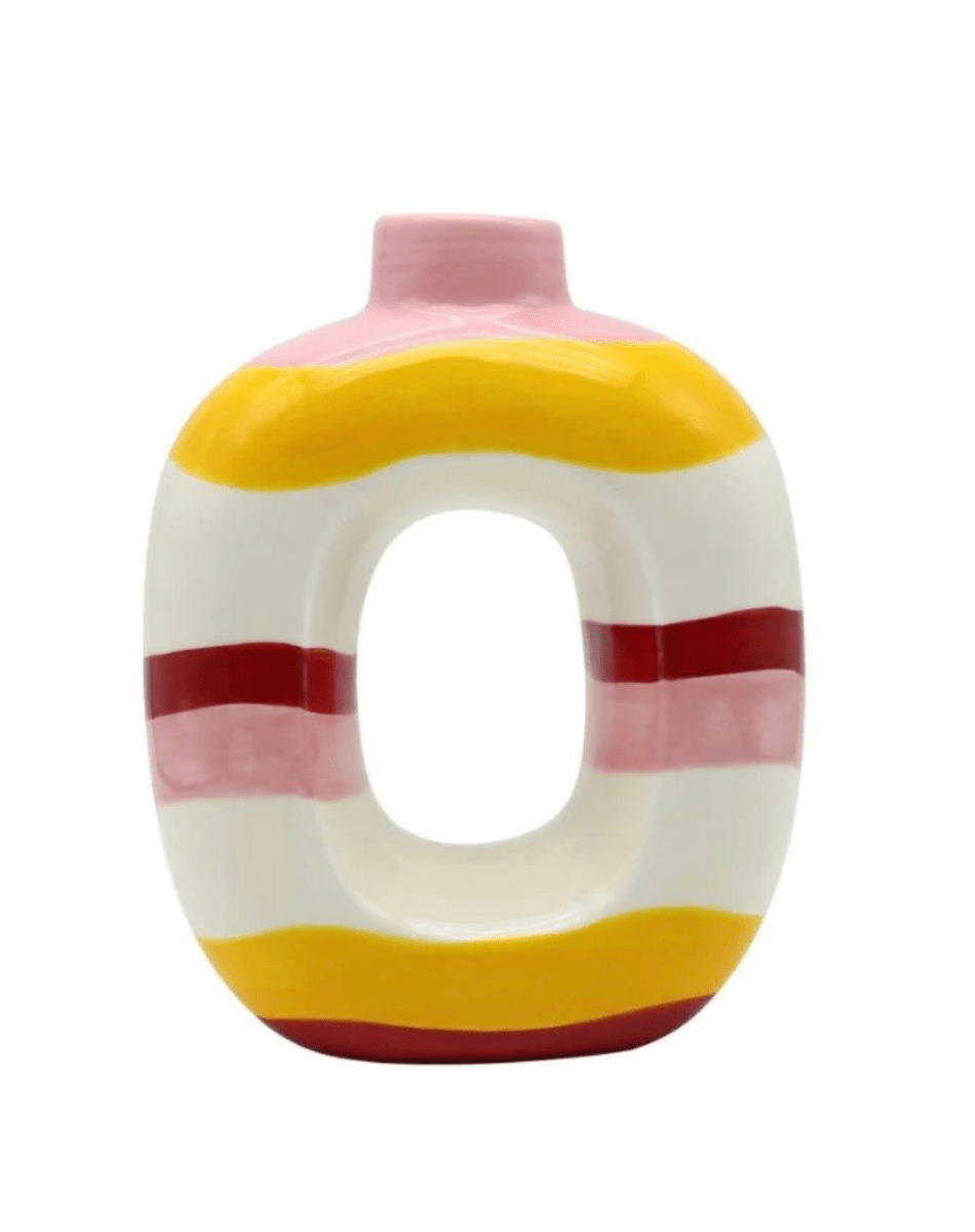 Optez pour le vase en céramique Joaquin et laissez entrer une dose de couleur et de bonne humeur dans votre intérieur. Avec ses teintes rose, jaune et rouge et son esprit résolument 70’s, ce vase attire le regard et donne immédiatement du caractère à une étagère, une table ou un rebord de fenêtre.