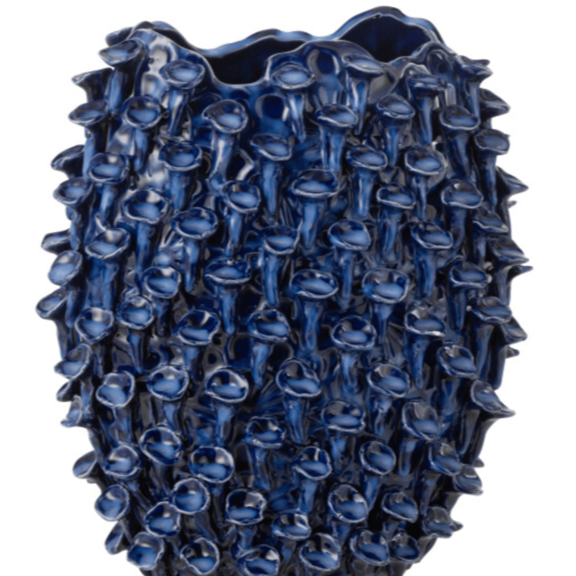Plongez dans un univers minéral avec ce vase d’exception au design organique. Entièrement revêtu de petites corolles en relief qui évoquent la richesse des récifs coralliens ou une floraison aquatique, ce vase en céramique émaillée est une véritable pièce de collection.