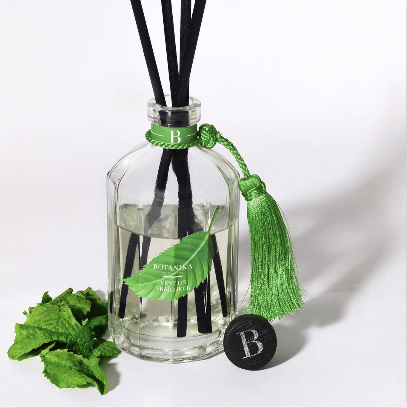 Inufflez une énergie nouvelle à votre intérieur avec le diffuseur « Vent de Fraîcheur ». Fidèle à l’élégance de la maison Botanika Marrakech, ce flacon apothicaire en verre transparent laisse entrevoir une fragrance pure, magnifiée par une illustration de feuille de menthe d’un vert éclatant.